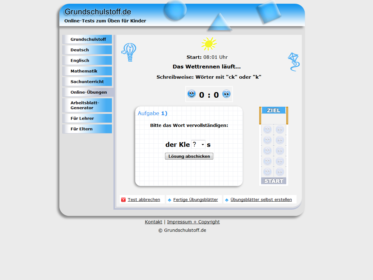 Hier kannst du im Internet üben. Du hast die Auswahl zwischen folgenden Übungen: